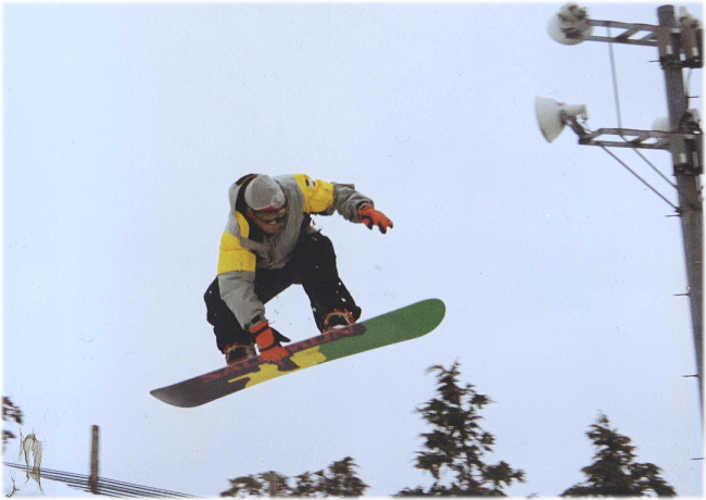 その 怪我以来 フリーランに没頭し、飛ぶのはやめた・・・多分 それから1シーズンは フリーラン オンリーにし 何とか 滑れるようになったかな? というか、滑りが安定しだして キッカーに入った・・・